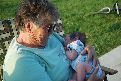 It is hard to believe that it has already been one month since Kale was born. He is a pretty good baby so far...the best we have had so we can't complain :)! He is really growing and changing everyday. We go to the doctor later this week so we will see just how much he is growing. He is starting to like his baths more, but still doesn't love them. His bouncy chair is one of his favorite places to be other than in the recliner with his daddy. He is great at traveling and doesn't mind his carseat too much. He doesn't really like to be in it unless we are moving. We wait until the last minute to put him in the carseat and try to load him and leave right away to avoid the crying that is sure to follow if he sits still in it for too long!