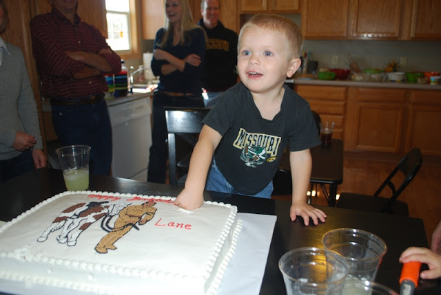 Lane is super blessed and had tons of family & friends at his birthday party. He had an awesome cake (thanks Kayla), got lots of fun presents and had a blast eating said cake and playing! Oh yeah, and skipping naptime :)